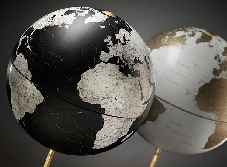 Negli anni Novanta la produzione si arricchì dei primi mappamondi di design, oggetti di assoluto impatto e molto suggestivi che, grazie all’unicità dei materiali impiegati, si adattano perfettamente anche agli ambienti più moderni.
